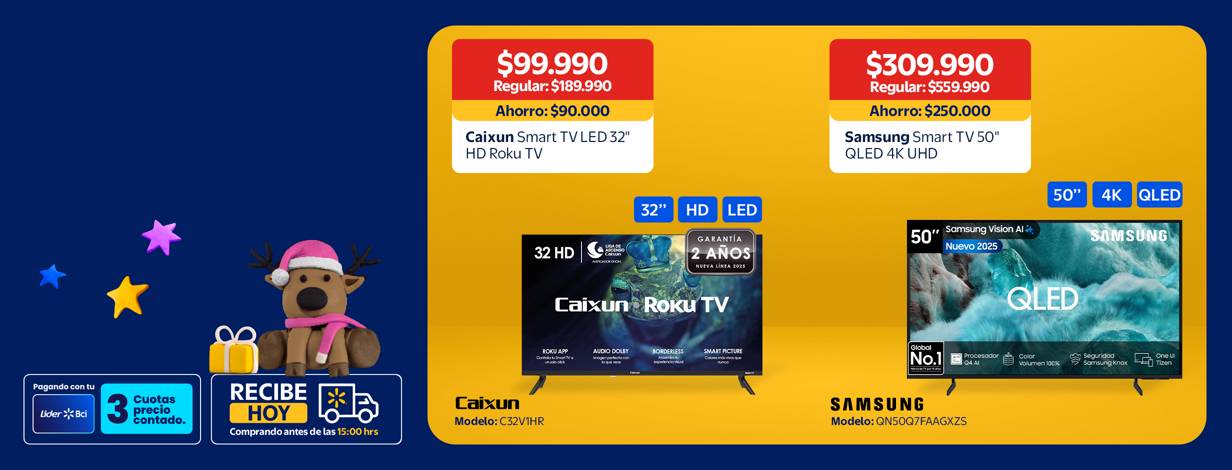 Renueva tu sala con el Caixun 32” HD Roku TV y el Hisense 65” QLED 4K UHD.